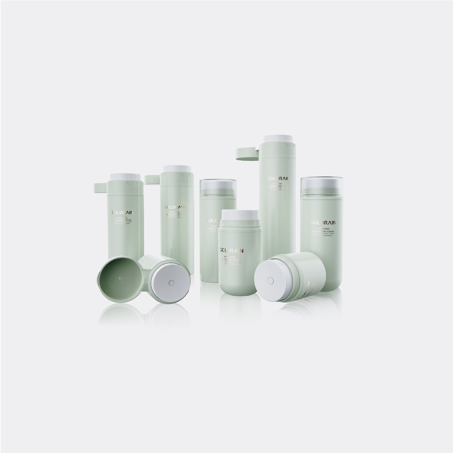 शिपमेंट से पहले उत्पादों की दोबारा जांच करेंउच्च अंत कॉस्मेटिक एयरलेस पंप बोतलें GR605L/L2 PP/PCR बोतल